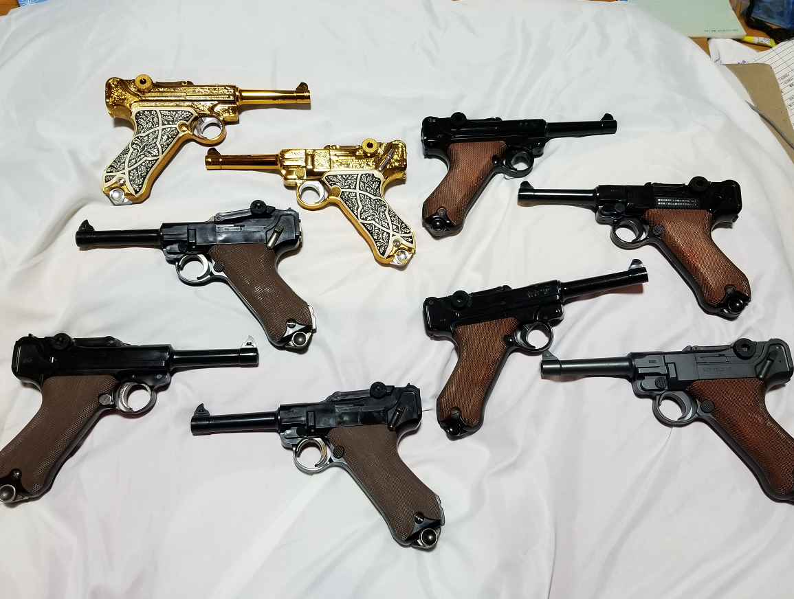 マルイ製6丁のうち5 丁はbb弾で、2丁はバイオハザードとコラボした物です。10禁仕様でトグルアクションが柔らかく連射も滑らかで超使ってます!